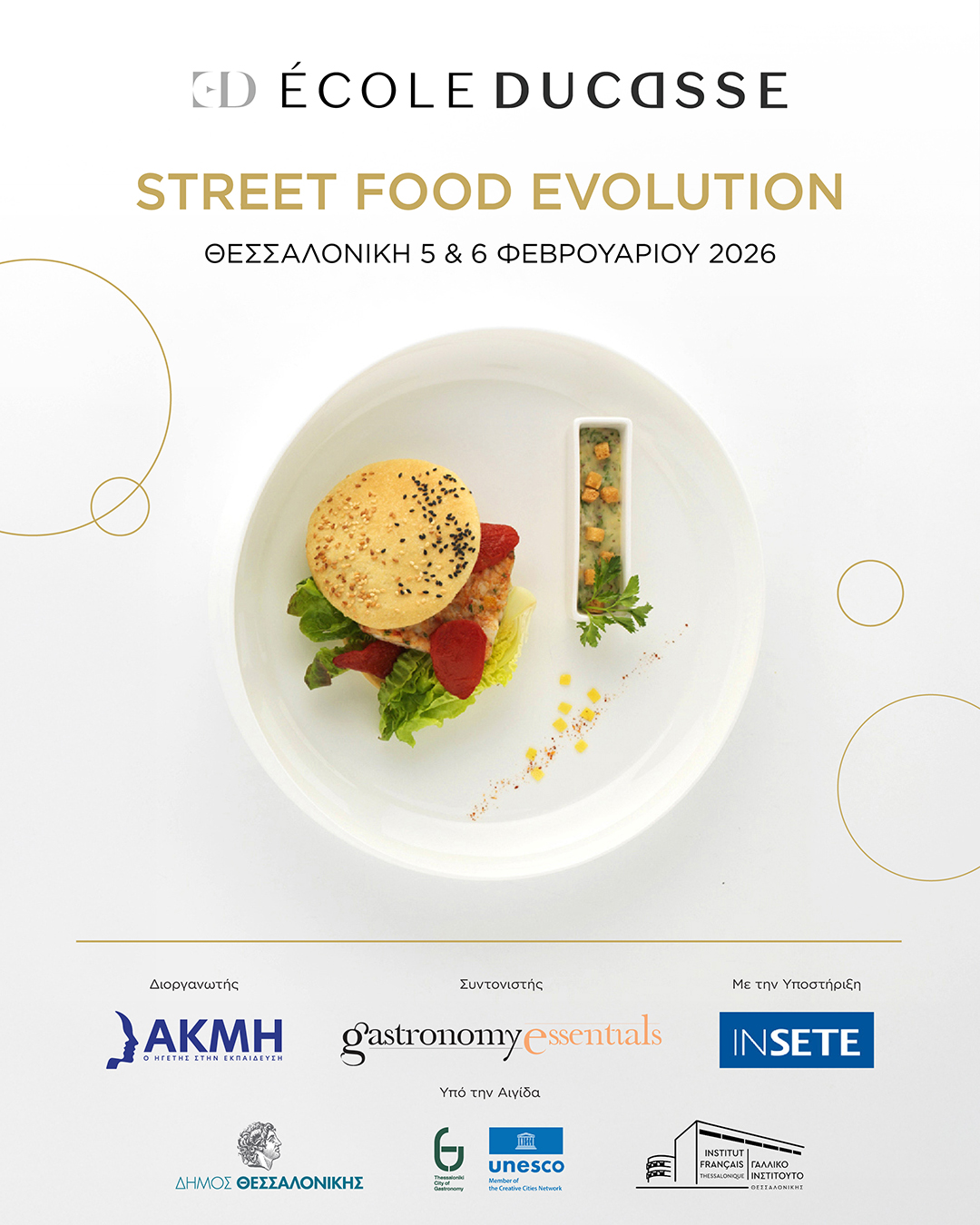 Το ΙΕΚ ΑΚΜΗ και η Gastronomy Essentials παρουσιάζουν ένα σύγχρονο διήμερο εκπαιδευτικό πρόγραμμα αφιερωμένο στη δημιουργική εξέλιξη του street food, σε συνεργασία με την παγκοσμίου φήμης Ecole Ducasse. Με εισηγητή τον έμπειρο Γάλλο Executive Chef Julian Mercier, Διευθυντή εκπαίδευσης της σχολής, το πρόγραμμα επικεντρώνεται στις νέες τάσεις, τις τεχνικές και τις γευστικές προσεγγίσεις που διαμορφώνουν το σύγχρονο street food, τόσο σε διεθνές όσο και σε ελληνικό επίπεδο.
