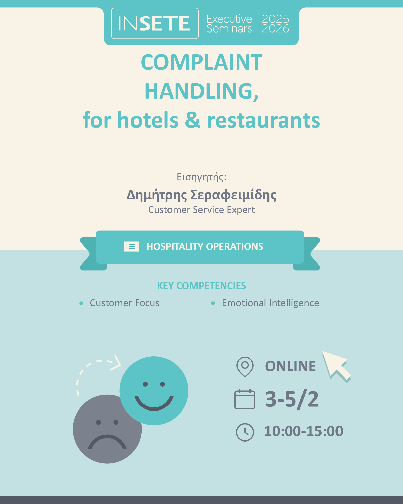 Όσοι συμμετάσχετε στο “COMPLAINT HANDLING, for Hotels and Restaurants” θα καταλάβετε γιατί και πώς θα βγαίνετε ΠΑΝΤΑ κερδισμένοι! Και εσείς προσωπικά και η επιχείρησή σας!