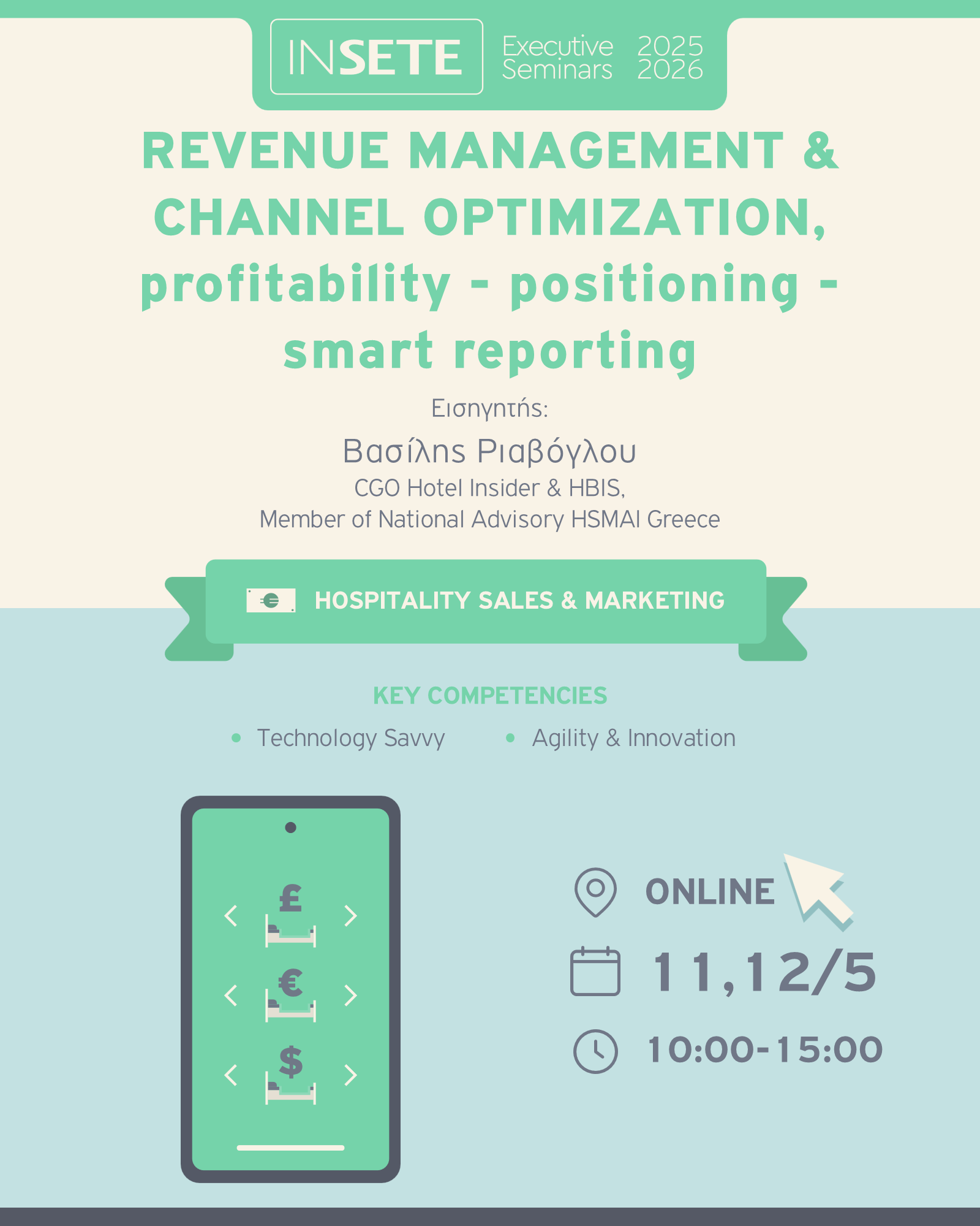 Το σεμινάριο απευθύνεται σε εργαζομένους των πωλήσεων, του ηλεκτρονικού εμπορίου, διαχείρισης εσόδων, προϊσταμένους κρατήσεων και ιδιοκτήτες ξενοδοχείων / επιχειρήσεων στον τομέα του Τουρισμού.